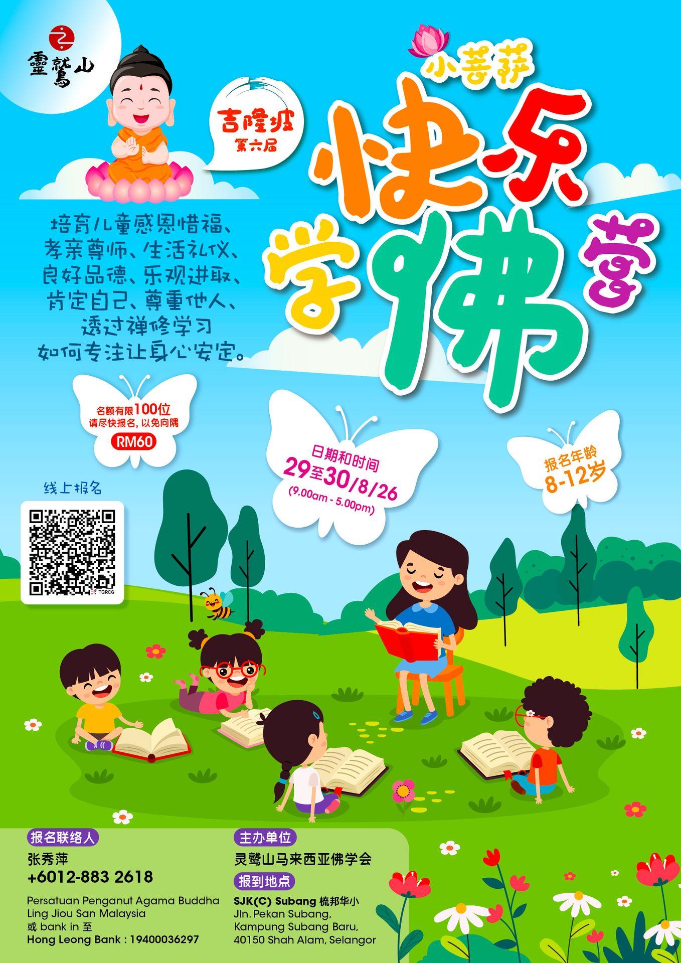 请自备水瓶 (必须) 、铅笔盒和笔记本。学佛营无提供早餐,请让孩子用餐后才入营。